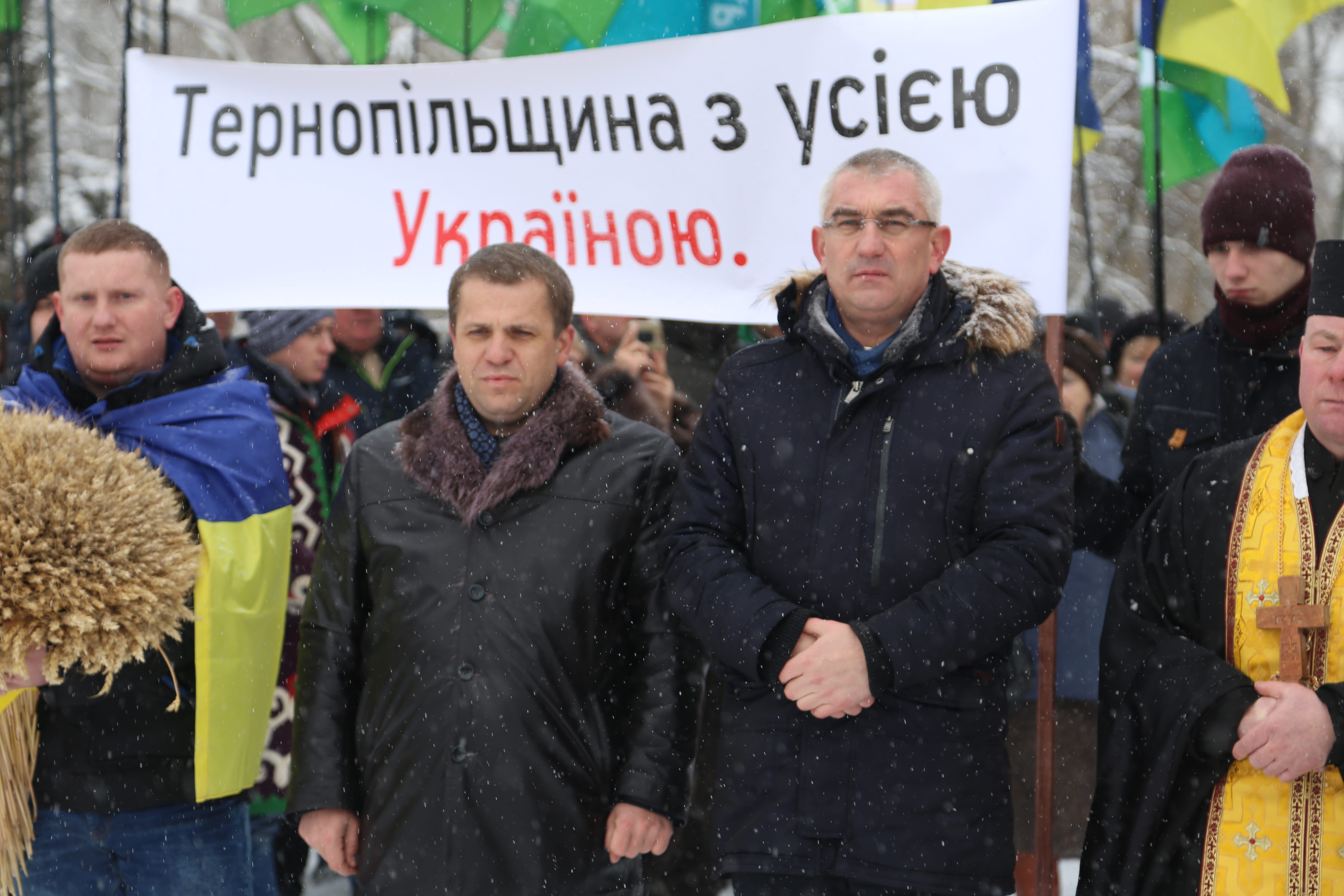 Представники «Аграрної партії» Тернопільщини та Хмельниччини привітали одне одного за національним звичаєм короваєм та снопами. Після чого вони утворили живий ланцюг, який символічно поєднав дві області.