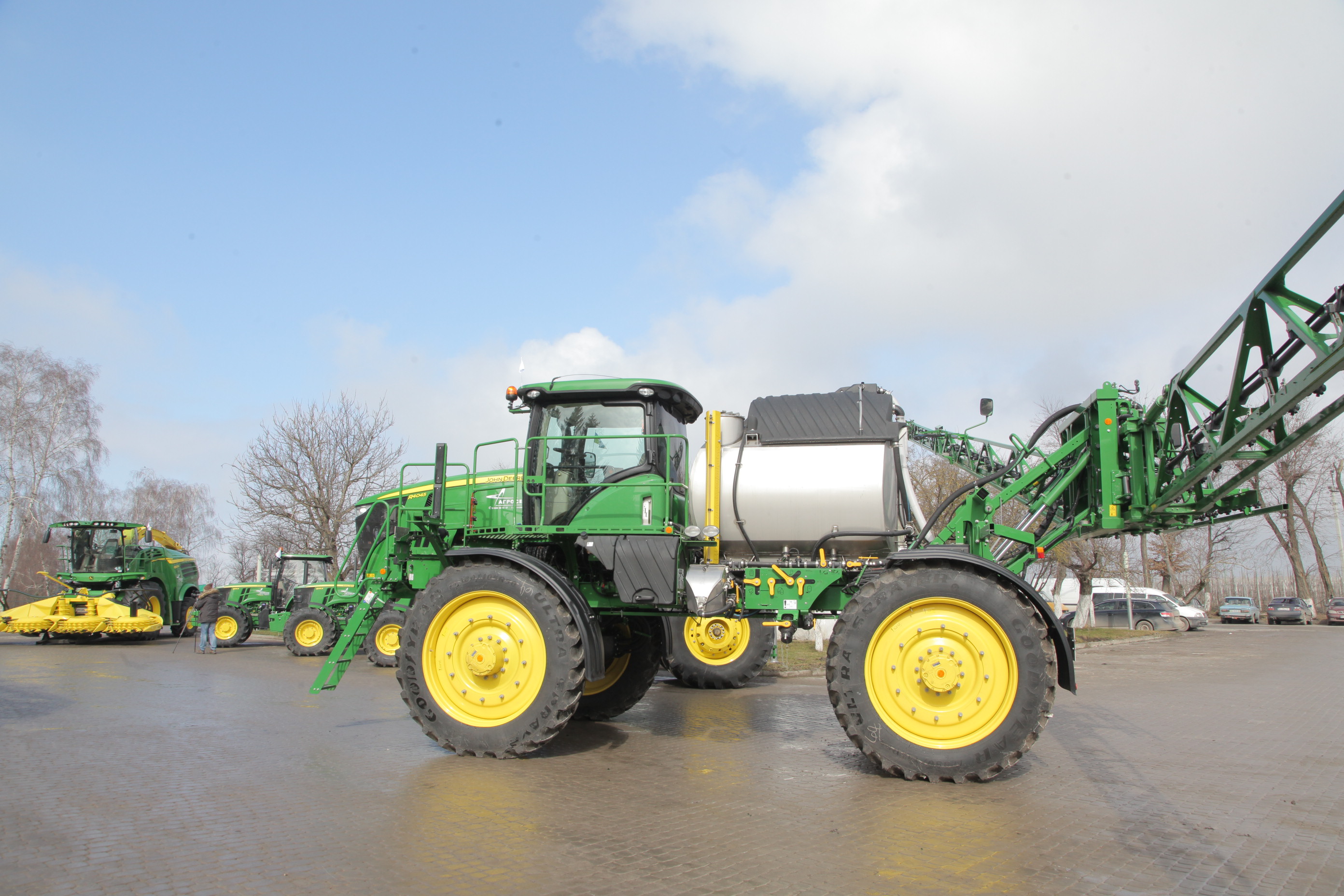 Автопарк «Агропродсервісу» поповнили шість одиниць техніки компанії «John Deere» – однин кормозбиральний комбайн 8500, один оприскувач R4045 ширина захвату площі якого дорівнює 36 метрів, один трактор 8335R та три трактори 6135B.