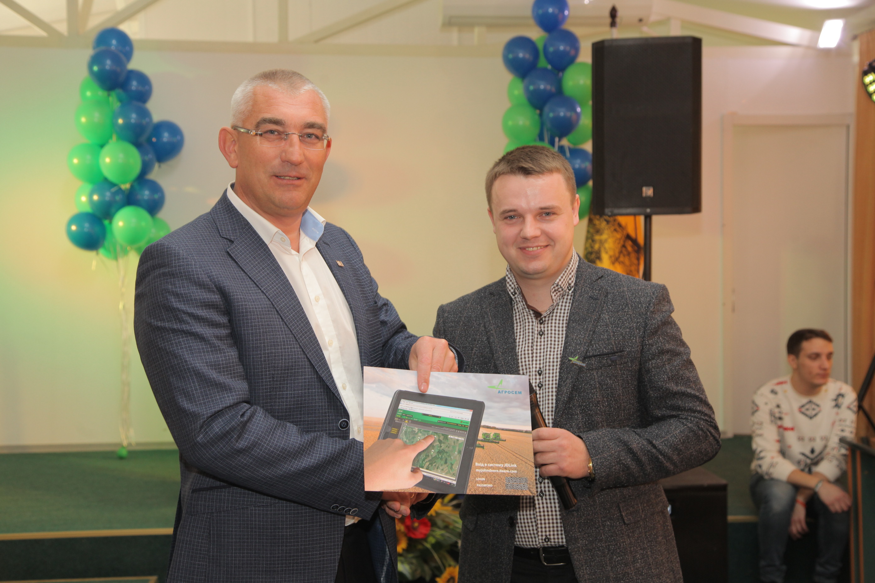 Окрім ключів від нової техніки Генеральний директор «John Deere Україна» Пітер ЗАХСЕ та директор ТОВ «Агросем» Олексій Кулик передали керівникам «Агропродсервісу» і сертифікати доступу до програмного забезпечення, яке дозволяє за допомогою сучасних комп’ютерних технологій отримувати всю інформацію про трактор чи комбайн: місце його перебування, ефективність роботи, потребу в обслуговуванні тощо.